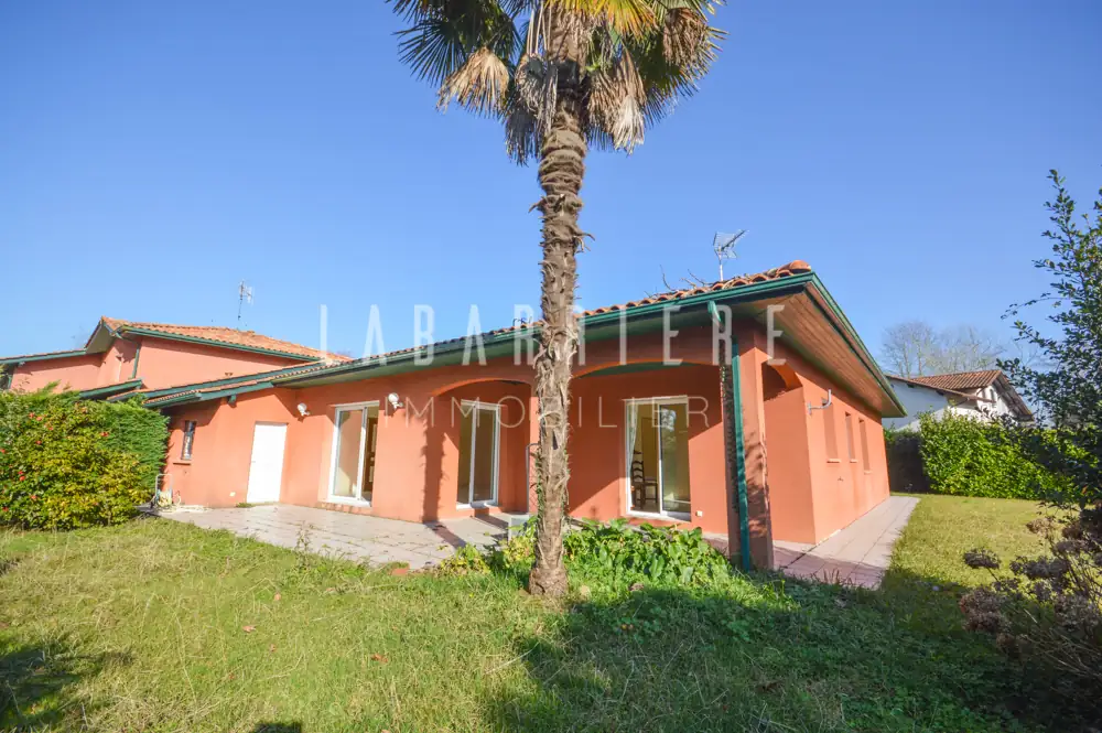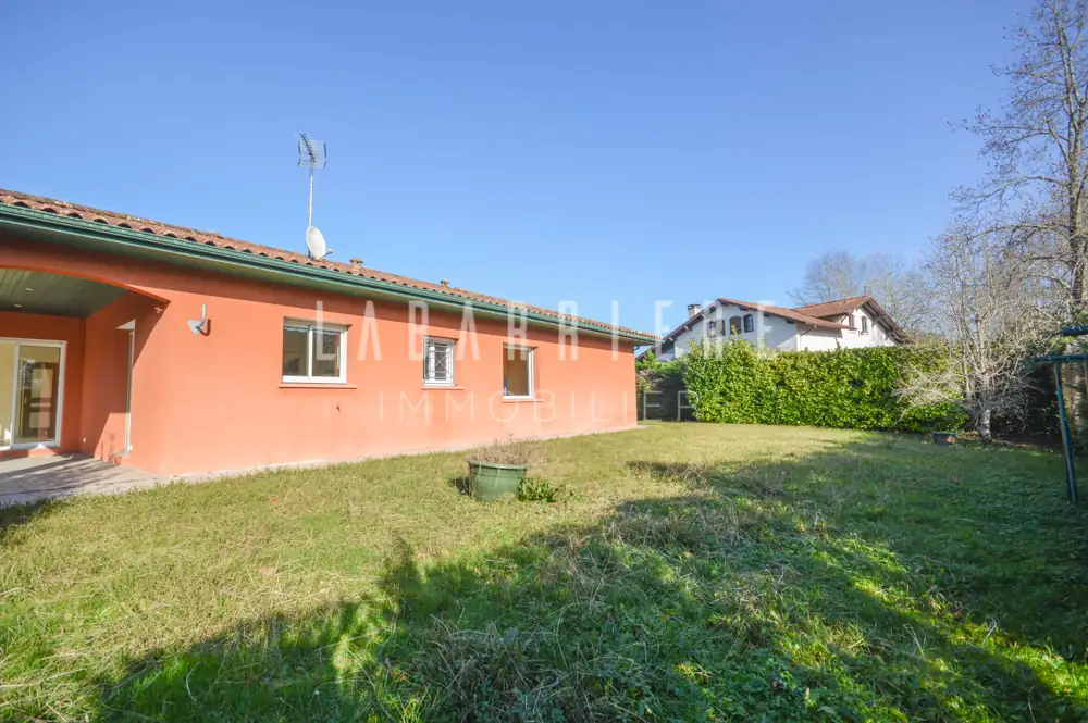 Située au fond d'une impasse en lisière de forêt, maison de plain-pied fonctionnelle, mitoyenne par le garage, quatre pièces, d’une superficie de 120,85 m² et édifiée sur une parcelle de 858 m² en jouissance privative et exclusive.