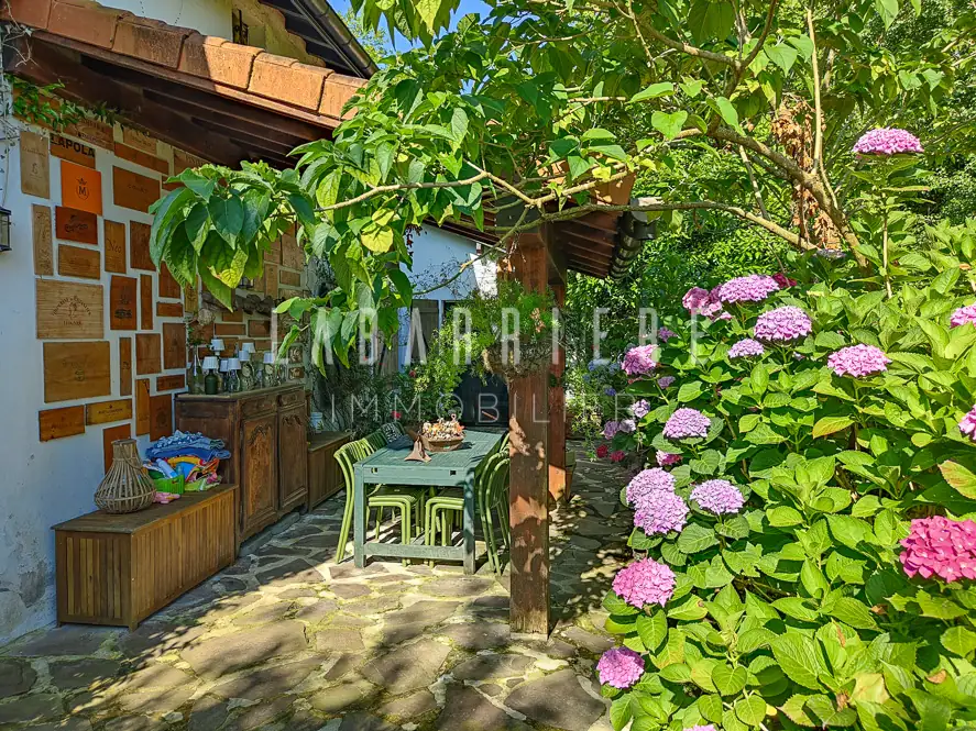 À seulement 3,2 km du centre du village d’Urrugne et 8,5 km de Saint-Jean-de-Luz, cette élégante villa offre un cadre de vie au cœur d’un environnement champêtre préservé, avec une vue dégagée sur la Rhune.